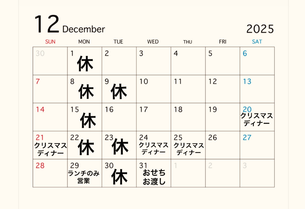 | CLOSED | 月(祝日の場合営業) ※月・火連休の場合あり |